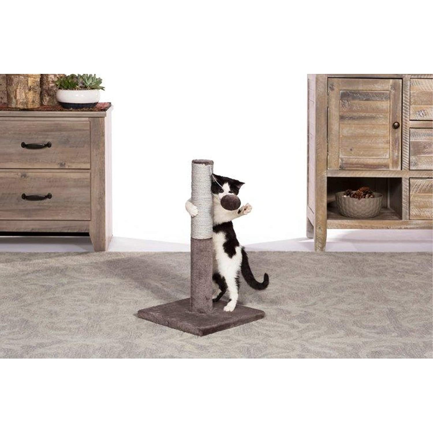• Jute rope scratching post offers an appealing texture to cats, curbing inappropriate scratching behaviors